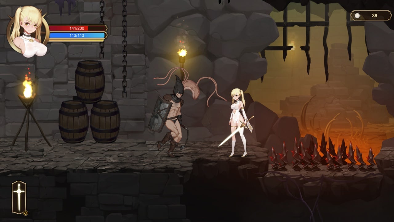 RitualSummon – это двухмерный экшен с видом сбоку. Проект рассчитан на геймеров постарше из-за наличия хентайных сцен. Их можно повторно пересматривать в галерее. У эротического проекта невысокая продолжительность. Прохождение занимает около двух часов. Управлять тут надо девушкой. Она умеет бегать влево и вправо, приседать, совершать прыжки, делать рывки, размахивать двумя типами клинков и пользоваться магией. Движения героини контролируются через клавиатуру. Её противники – это гоблины и другие фэнтезийные создания. Враги после смерти оставляют что-то вроде душ. Их нужно собирать и жертвовать богине у алтарей, чтобы прокачиваться. Также воительницу можно слегка усилить, если искать спрятанные на локациях бонусы. Они могут, к примеру, повысить ей наносимый урон.