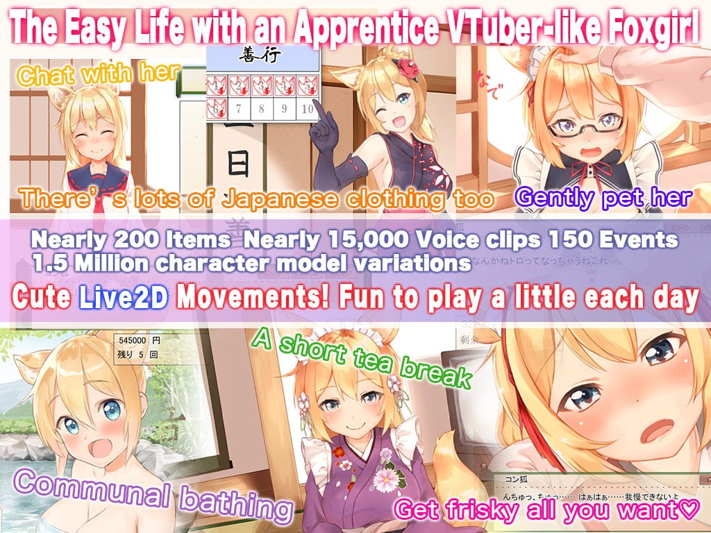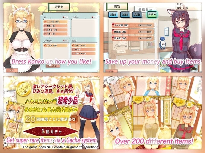 Your Waifu Foxgirl Konko - Furfect Edition переносит геймеров в расслабляющие романтические авантюры молодой девушки-лисички Конко, что будет общаться с второстепенными персонажами и приятно проводить время в их компании. Проект является интерактивной визуальной новеллой, где необходимо насладиться красивой анимацией анимешной девчонки и различными пикантными кат-сценами, что рассчитаны на взрослую аудиторию пользователей, достигших совершеннолетия.