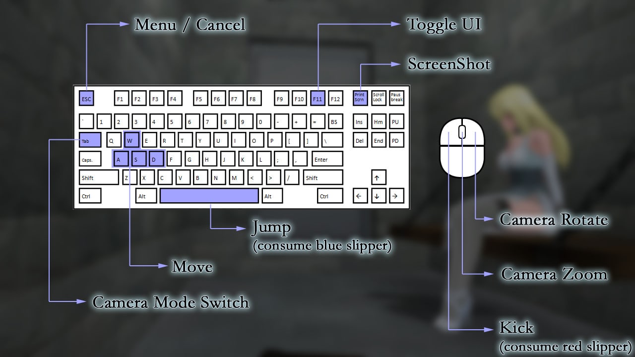 Побег Золушки! – это смесь визуальной новеллы и платформера с элементами игры-головоломки. У видеоигры стилизованная под аниме графика с сел-шейдингом. Она сочетает в себе 2D и 3D. Тайтл сделан на движке Unity всего одним человеком. Девица способна бегать в разных направлениях, поворачиваться спиной к блокам и толкать их, прыгать, бить ногами. Можно ломать некоторые объекты. Управление её движениями заточено под использование мыши и клавиатуры. Также имеется поддержка геймпадов. Игрок может поворачивать камеру, менять её ракурсы, приближать и отдалять картинку. За прохождение уровней геймер получает валюту. Деньги можно потратить на покупку эротических нарядов для дамы. Помимо этого юзер может периодически любоваться хентайными сценами с её участием.