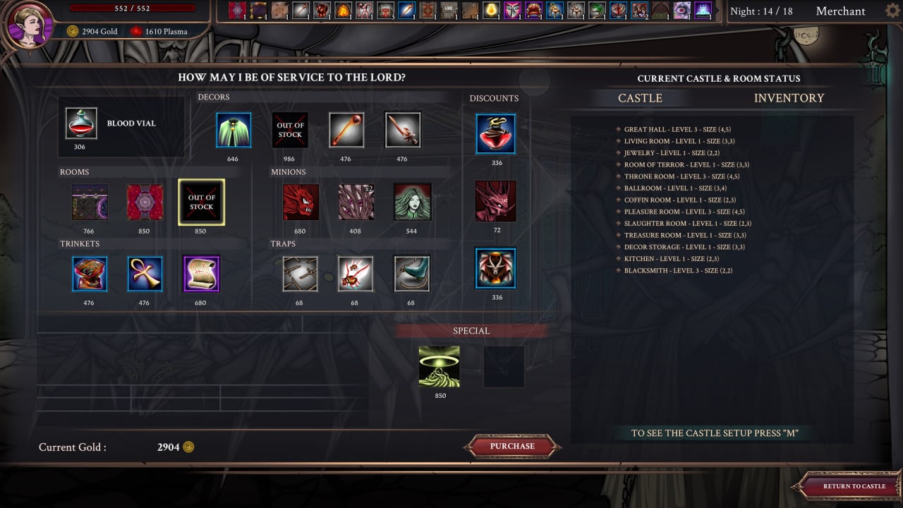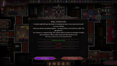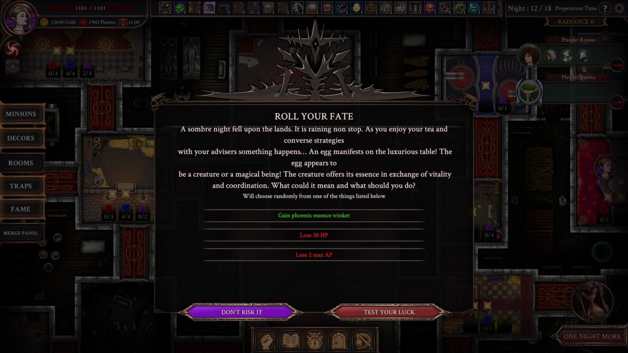 Few Nights More – это пошаговый рогалик на вампирскую тематику. По сюжету человечество когда-то победило темные силы, но те возродились и захотели вернуть то, что принадлежит им по праву. Люди такому повороту событий не обрадовались и отправили в злое логово своих героев. Играть тут предлагают за лорда-вампира. Игровой процесс можно условно разделить на 2 фазы. Сначала пользователь готовится к вторжению противников. В своей твердыне он может создавать и прокачивать комнаты, расставлять ловушки и монстров, улучшать своих миньонов, распределять способности, заключать сделки с Торговцем, Сборщиком долгов или Контрактным Дилером. После всех приготовлений начинается серия битв. Во время менеджмента камера находится сверху. А в сражениях её ракурс меняется на вид сбоку. Бои тут пошаговые. Если недруги одолеют протагониста или разрушат его гробницу, то придется начинать всё заново.