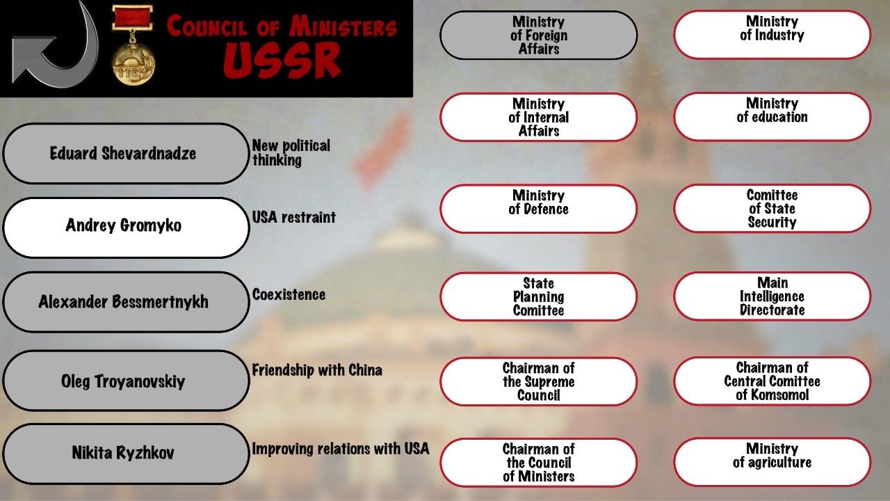 - Возможность закончить Перестройку и воплотить смелые идеи в жизнь, например, построить полулегендарный ОГАС.