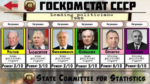 Для успешной игры будет достаточно минимальных познаний в истории и экономике. Даже на самом лёгком уровне игра заставит попотеть, ведь игрок постоянно вынужден принимать тяжелые решения, которые устраивают далеко не всех. Вся игра пропитана усталостью от социалистической реформы, а атмосфера усиливается за счёт саундтрека из классических советских песен. Вливание в образ секретаря Партии в такой обстановке проходит мгновенно. Нелинейность игры - одно из её главных преимуществ. Разрешается провернуть практически любое действие, вплоть до убийства Ельцина руками КГБ. Было бы желание. Выбор общественного строя строго за игроком. Вариантов много - от демократии и капитализма до утопического коммунизма или культа личности с диктатурой в придачу.
