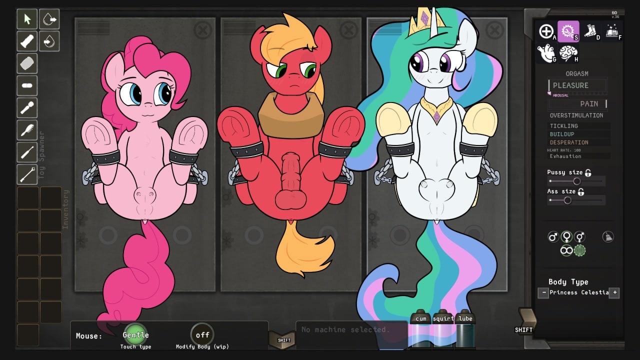 Secret Horse Files 3 - это двухмерная видеоигра для взрослой аудитории от независимого разработчика, основанная на персонажах мультфильма My Little Pony. Это своеобразный эротический симулятор с БДСМ уклоном, который отдаст в полное распоряжение игрока несколько "подопытных". Среди героев будут пони, драконы и грифоны и человеческие особи. Сюжет не предусмотрен, как и задачи и оценочная система. Весь сексуальный контент и инструментарий доступен с самого начала, и может быть свободно использован. Графическое оформление выполнено в мультяшном стиле.