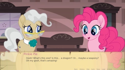 Pony Tale Adventures - это пародийная фан-игра в жанре визуальной новеллы и симулятора свиданий, вдохновленная популярным мультфильмом. Игровой процесс сопровождает я легким и ненавязчивым саундтреком, а визуальное оформление выполнено в красочном мультяшном стиле. Игроки преимущественно будут следить за развитием сюжета, поданным через иллюстрации с текстовым сопровождением. Периодически можно совершать выбор в диалогах, который повлияет на ход событий. Для быстрого перемещения по территории можно использовать карту. Также есть возможность взаимодействовать с объектами окружения.
