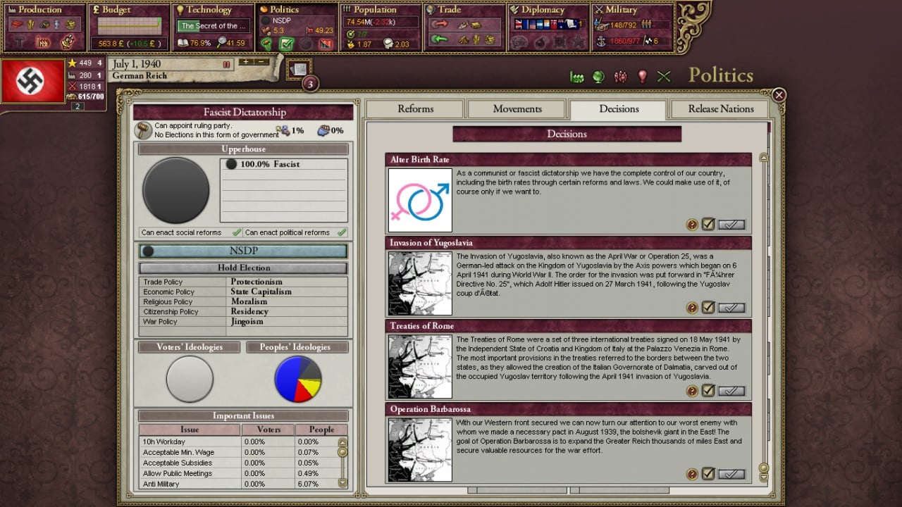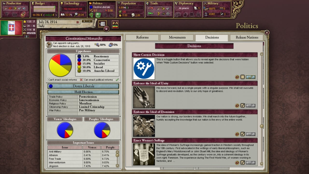 Victoria 2: Heart of Darkness - Ultimate Ultimatum v 0.8 No.2 Новая версия Полная версия Последняя в альт. раздачах Дата выхода 2020 Разработчик marxistguy Жанр Стратегии Обновлено 24 марта 2025, 23:33 Список изменений Victoria 2: Heart of Darkness - Ultimate Ultimatum является глобальным модом для стратегии с элементами политической симуляции Victoria 2. В этой части действие переносит игроков в Африку, где за новые земли будут сражаться великие колониальные государства. В попытке расширить свои территории, державы воюют, заключают договора, свергают власти и используют другие манипуляции. В этой доработанной модификации присутствует три кампании, стартующие в разные временные отрезки 17 и 18 веков. Игровой период охватывает более 3 сотен лет, позволяя заглянуть в далекое будущее. На протяжении всех сюжетов будут появляться с некоторой периодичностью десятки глобальных событий, которые окажут влияние на расстановку сил. В Victoria 2: Heart of Darkness - Ultimate Ultimatum есть такое уникальное событие, как гражданская война в Соединенных Штатах, что должна произойти в 2023 году. В ее результате появится Панамериканская супердержава. В этот момент Россия сформирует содружество под названием Объединенная федерация славян. В игру добавлены новые настройки, которые позволят новичкам лучше освоиться с местной механикой. Например, в начале можно выключить появление кризисов. Правкам подвергся и баланс, а экономика была усовершенствована с учетом существующих реалий. Также на некоторых континентах расширился список доступных для взаимодействия стран. Скачать торрент Скриншоты Показать больше Видео из игры Примечание Более актуальная версия: v 0.8 No.2находится в блоке - Альтернативные раздачи. Скачать БЕЗ торрента прямая ссылка через uTorria Альтернативные раздачи Прямые ссылки Облачные хранилища v 0.8 No.2 19.65 МБ Показать Системные требования ОС: XP / Vista/ 7 / 8 / 10 Процессор: Pentium 4 2.4 GHz Оперативная память: 2 GB Видеокарта: ATI Radeon X1900 Место на диске: 2 ГБ Историческая