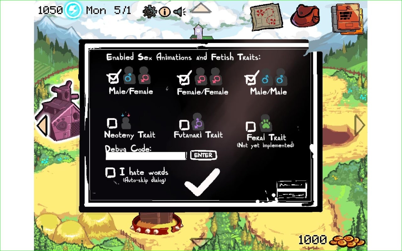 На интерфейсе отображается количество имеющихся средства, инвентарь, текущие цели протагониста, ранее сделанные заметки, день недели и второстепенные настройки. Юзеру необходимо управлять собственной фермой, общаясь с похотливыми монстрами и развлекаясь с ними, а после выводя потомство на продажу. Деньги позволят приобрести дополнительные инструменты и расширить территорию фермы, улучшив бизнес.