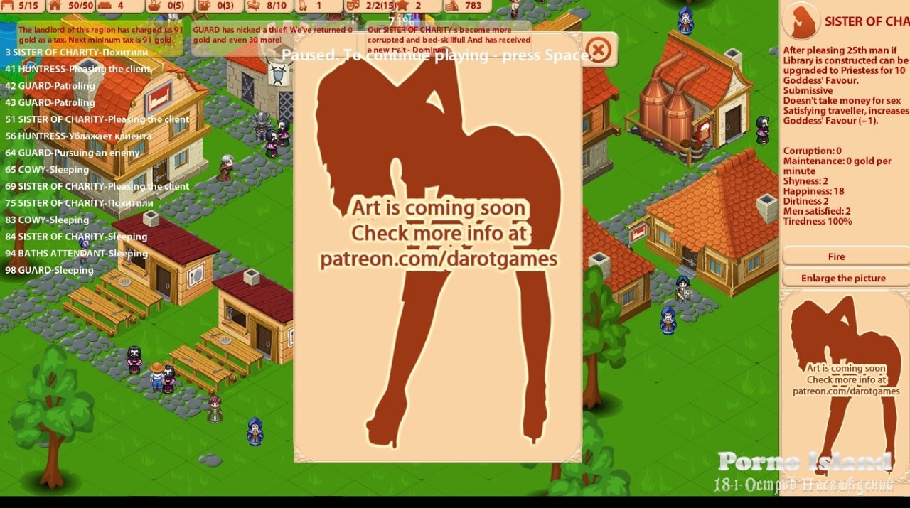 В Публичный город юзерам придется насладиться геймплеем стратегии, где получится заведовать небольшой таверной. Предстоит обслуживать клиентов, предоставляя им доступ к пище, напиткам, сну и постельным развлечениям с милыми красотками. Выйдет расширяться и постепенно превращать заведение в поселение, где выйдет разместить конюшни, фермы и прочие здания. Необходимо развивать собственный бизнес, чтобы добиться успеха, а также закадрить несколько милых девчонок и приятно провести с ними время.В процессе прохождения, игрокам необходимо: