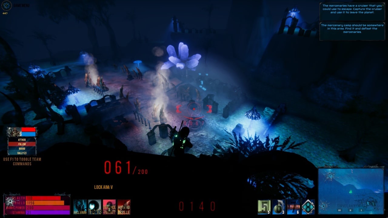 Затерянная империя 2977 – это смесь шутера, экшена и ролевой игры. В инди-проекте используется вид от третьего лица. В данной видеоигре можно бегать, прыгать, перекатываться, взаимодействовать с окружением, стрелять. Помимо этого есть возможность управлять звездолетом, кататься на вездеходе и летать на реактивном ранце. Снаряжение можно как найти на локациях, так и скрафтить самостоятельно у специальных терминалов. Различная броня по-разному отображается на модели бойца. Воину необязательно бегать по открытым локациям и сражаться с противниками в одиночку. Можно обзавестись союзниками и раздавать им приказы. Также инди-игра позволяет создать небольшую армию дронов и применить её против супостатов.