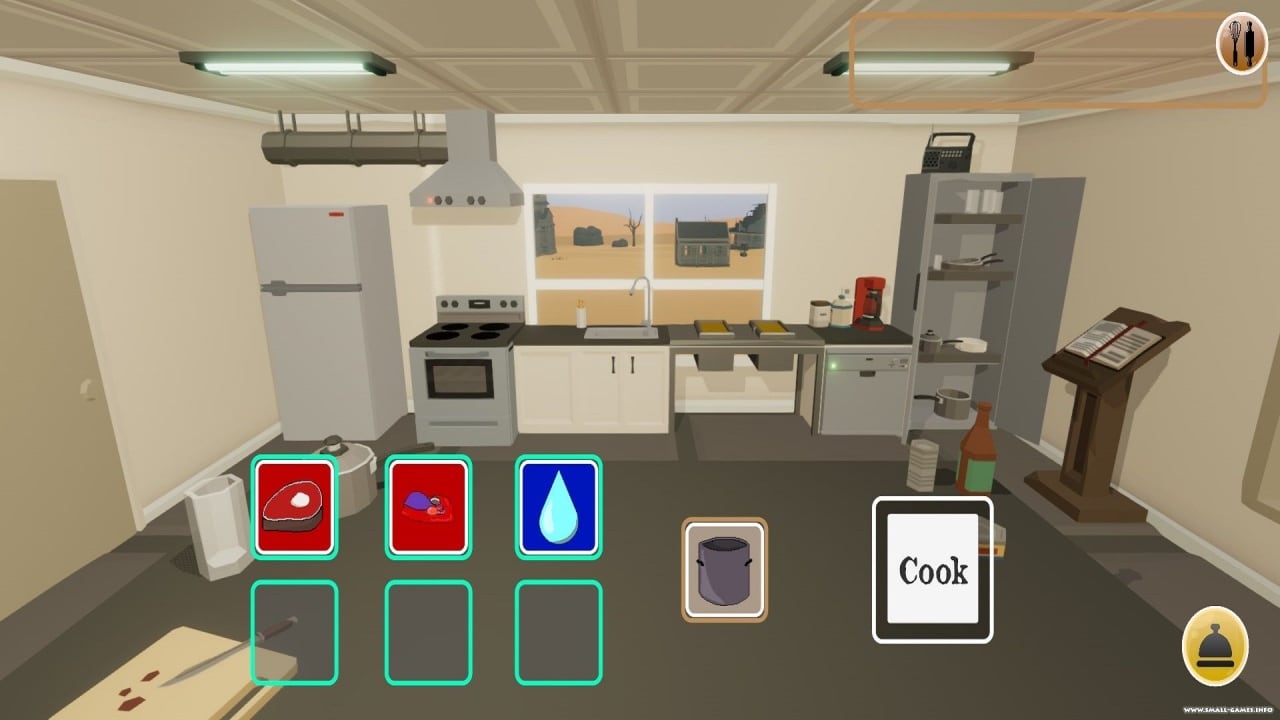 Cannibal Cooking Полная версия Последняя Дата выхода 2022 Разработчик Mj Sirius Industries Жанр Инди, Аркады Обновлено 26 января 2025, 16:49 Список изменений Cannibal Cooking переносит игрока в постапокалиптический мир, где предстоит заниматься кулинарными делами, изучать новые рецепты и внедрять их в свое меню. Задача в игровом процессе – остаться в живых как можно дольше, сталкиваясь с постоянными неприятностями в опасном мире. Главный герой живет в небольшой деревушке, отдаленной от основного города. Это место поможет ему пережить последствия апокалипсиса. Главная проблема жителей этой деревни – продовольствие. Им удается находить еду, но мясо здесь в особом дефиците. Центральный персонаж находит решение необычно исправить эту проблему особым способом. Миссия протагониста – накормить обитателей городка мясом. Однако для этого ему потребуется достать человечину и найти способ правильной готовки. Люди часто умирают, кто из-за болезней, а кто решает собственноручно свести свою жизнь с концами.Пользователю нельзя дать пропасть любому мясу, при этом не вредя живым людям. Во время готовки необходимо применять разнообразные способы, чтобы уничтожить все бактерии и сделать так, чтобы мясо было съедобным. В геймплее потребуется отыскать человечинки и притащить ее в свой ресторан. Геймер будет исследовать локации с видом от третьего лица, взаимодействовать с окружением и подбирать заветную сырую еду. В книге рецептов постепенно открываются новые блюда, но для них нужны разные ингредиенты. Скачать торрент Скриншоты Скачать Cannibal Cooking Тип релиза Пиратка (Таблетка: Не требуется) Версия (Полная) Последняя Размер 129.40 МБ Интерфейс Английский Озвучка Отсутствует Скачать .torrent торрент файл Скачать БЕЗ торрента прямая ссылка через uTorria Системные требования ОС: Windows 7, 8, 10 Процессор: Dual Core 2.0 GHz Оперативная память: 2 ГБ Видеокарта: Intel HD 3000 Место на диске: 300 МБ Головоломка, Юмор, Мясо, Кулинария