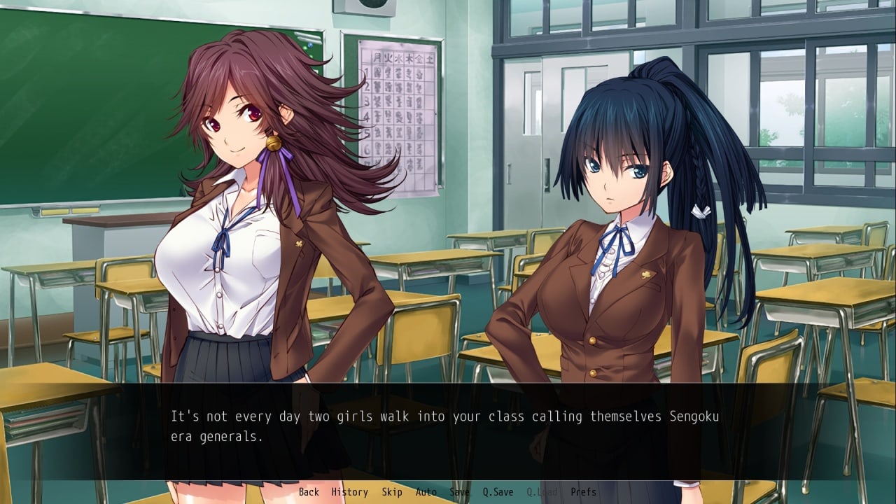 Commander Babes показывает, что могло бы быть, если бы исторические японские военачальники были женщинами. Действие видеоигры происходит в современной, но альтернативной Японии. Такэда Сингэн и Уэсуги Кэнсин переносятся в 21-й век прямиком из периода Сэнгоку после того, как наказанный за проделки Джун и его подруга детства Юи случайно ломают старинную вазу в ходе уборки кабинета декана. Полководец и феодал, к большому удивлению студентов, оказываются представительницами прекрасного пола. Молодой человек считает себя ответственным за их внезапное появление, поэтому он начинает помогать гостям из другой эпохи адаптироваться в новом для них времени. От барышень парень узнает, что из-за своих военных и политических карьер они так и не познали радость материнства. Он решает помочь им с этой проблемой.