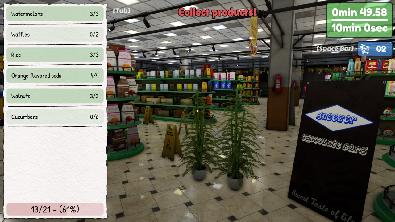 Игра Внезапный Маркет разделена на 12 уровней. Они постепенно становятся всё более сложными. Для каждой карты есть свой список покупок. Задача пользователя состоит в том, чтобы найти и собрать товары до истечения таймера. Затраченные минуты и секунды влияют на конечный результат. Можно проходить этапы повторно и устраивать спидраны, чтобы заработать больше очков. Всего здесь есть 250 моделей предметов, разбитых на 86 типов. Иногда на локациях попадаются дополнительные препятствия. Геймплей выглядит следующим образом. Юзер носится по торговым рядам, хватает на ходу овощи, фрукты, напитки, консервы, выпечку и так далее, следит за своей тележкой и убегает от охранников. Геймер может подбирать бонусы, что позволяют ему делать рывки.