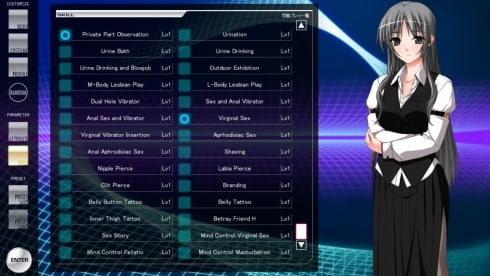 Проект наполнен сценами и изображениями сексуального контента. Юзер будет управлять несколькими корпусами, где происходит подготовка "товара". Редактор позволяет настраивать внешность девочек, а после отправлять их зарабатывать деньги, развлекаясь с клиентами. В каждой сцене будет отображаться оригинальная девушка, прежде созданная при помощи внутриигрового редактора. Понадобится выплачивать заработную плату работникам и правильно распределять бюджет, чтобы расти.