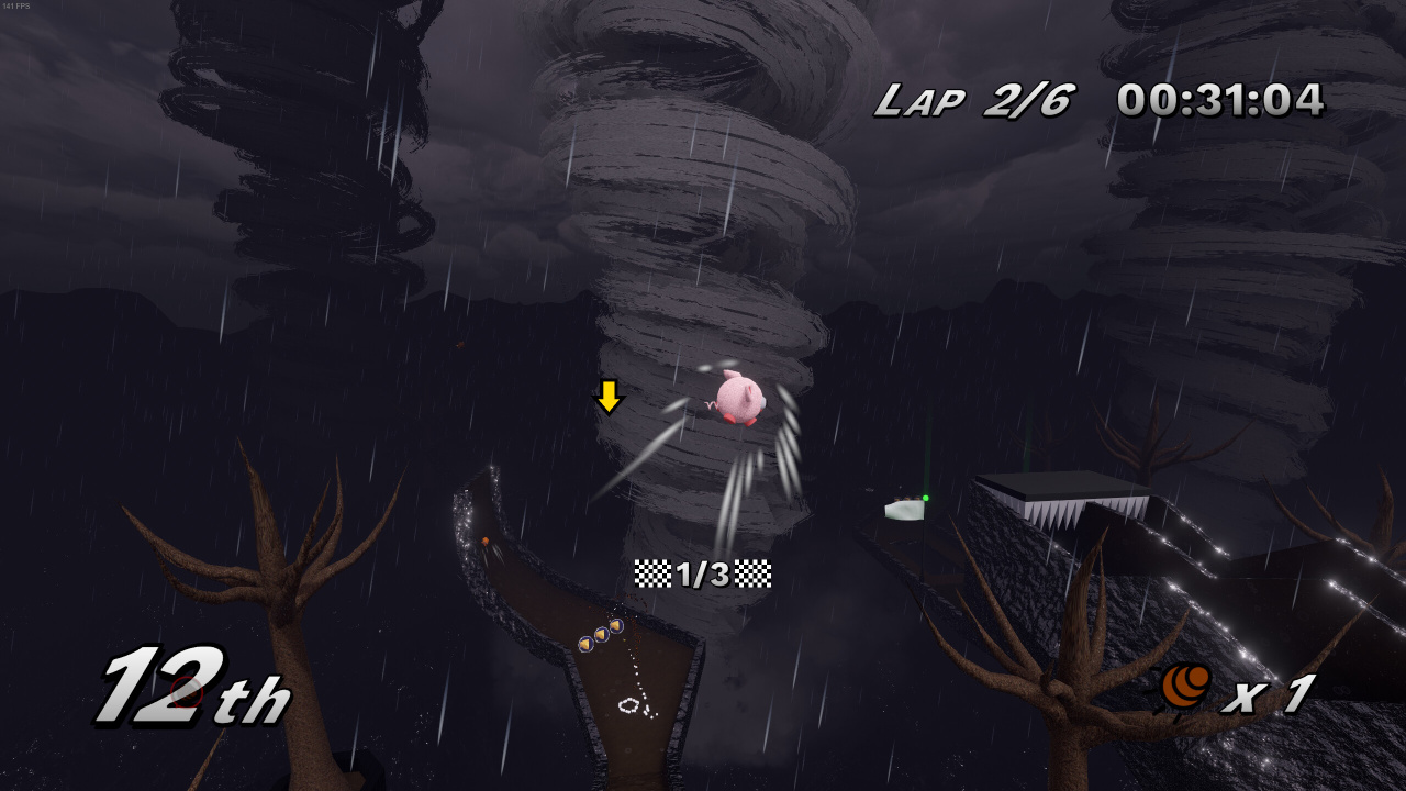 FurBalls Racing – это аркадные гонки с элементами платформера и трехмерной мультяшной графикой. Вместо машины игрок управляет похожим на мячик милым животным. Есть шарообразная коровка, собачка, котик и так далее. На выбор предоставляется около 16 персонажей, но не все из них доступны с самого начала. Эти звери перекатываются. Они могут набирать и сбрасывать скорость, поворачивать влево и вправо, рикошетить от стен, подпрыгивать и ускоряться (если юзер коснется разбросанных по трассам ускорителей). Все треки здесь кольцевые. Геймплей местами напоминает секции со скоростными забегами из трехмерных видеоигр про Соника. Также проект отчасти похож на серию Monkey Ball (с тем лишь отличием, что здесь надо контролировать не окружение, а самого зверька). Для победы нужно прокатиться 3 круга и добраться до финиша раньше соперников. По пути необходимо преодолевать различные препятствия. Также при желании можно собирать разбросанные повсюду бонусы. Они позволяют выстреливать в оппонентов самонаводящимися снарядами.