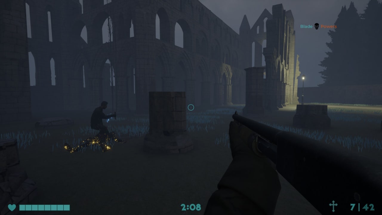 Истребитель вампиров: Воскрешение содержит в себе 10 карт с разной атмосферой. Перед началом матча можно выставить его длительность – 15, 20, 30 или 60 минут. В этой видеоигре нет полноценного сюжета и кампании, но есть подобие сингла и предыстория. Она подается с помощью текстовых описаний и фоновых картинок. В наличии 2 режима – мультиплеер и практика (схватки с ботами). Можно устраивать дуэли, парные поединки и командный дезматч на 12 человек (по 6 пользователей за каждую из двух противоборствующих сторон). Для победы в раунде надо перебить всех соперников.