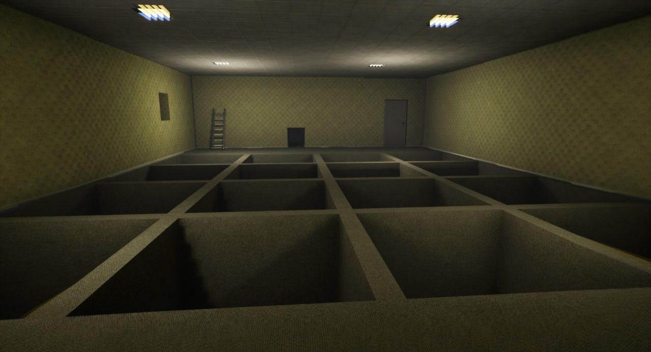 The Backrooms: Liminal Reality сделан на основе крипипасты про Закулисье. Так зовется состоящий из офисных и подсобных помещений бесконечный лабиринт, находящийся где-то в параллельном измерении. Он разбит на уровни, чьи интерьеры различаются между собой. В коридорах и комнатах на потолках находятся люминесцентные лампы, которые очень сильно гудят. Стены в этих локациях обклеены разными боями, а полы покрыты коврами. Пустые помещения, где должна кипеть жизнь, одним лишь своим видом вызывают внутреннее напряжение. Считается, что выбраться из этого места практически невозможно. По сюжету именно этим и придется заняться угодившему в западню герою.