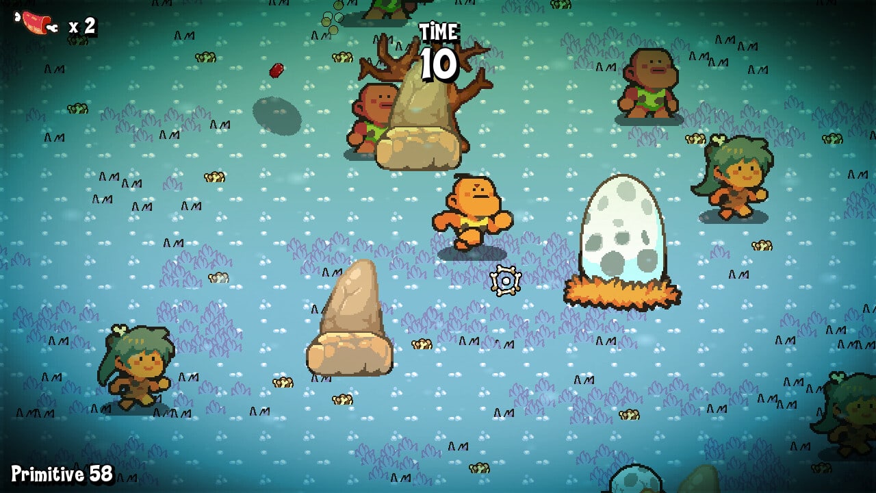 Первобытный век, как следует из названия инди-тайтла, переносит игроков во время пещерных людей. За одного из них и предстоит играть. У постепенно сужающегося уровня есть лаконичное сюжетное объяснение. Завязка начинается с появления лесных пожаров. Огненная стихия загнала обитателей лагеря в кольцо. В результате человечки начали между собой сражаться за еду. Драться тут приходится исключительно с ботами. Контролируемые искусственным интеллектом жители нападают не только на геймеров, но и на себе подобных компьютерных супостатов. Так что при желании можно избегать некоторых потасовок. Смысл игрового процесса состоит в том, чтобы уклоняться от вражеских атак, стрелять в недругов в ответ проджектайлами и успевать подбирать в массовых побоищах мясные куски.