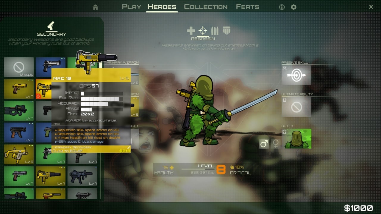 На выбор доступно 4 класса героев. У каждого свой индивидуальный тип снаряжения и способности. В Strike Force Heroes есть мощный Танк или особая пушка Убийца, способная устранять врагов с одного выстрела. Помимо, арсенал вооружения содержит сотни видов оружия и навыков, которые можно комбинировать между собой. При каждом забеге можно совершенно по-разному настраивать своего персонажа, чтобы полностью менять тактику сражения.