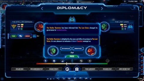 Stellar Sovereigns может порадовать любителей жанра 4Х. Этот проект использует научно-фантастический сеттинг. Глобальная космическая стратегия предлагает игрокам руководить своими империями в звездном скоплении. Карта создается случайным образом при каждом новом прохождении. Этот тайтл содержит в себе только одиночный режим, так что воевать придется с ботами. Весь игровой процесс происходит в реальном времени. Упор в геймплее сделан на микроменеджменте. Но при этом видеоигра позволяет юзерам делегировать часть полномочий 4 губернаторам, что контролируются искусственным интеллектом. В этом продукте есть система прокачки, напоминающая RPG. При выполнении заданий пользователи зарабатывают очки и улучшают за них черты. Все они обладают политическими ассоциациями и влияют на курс развития государства.