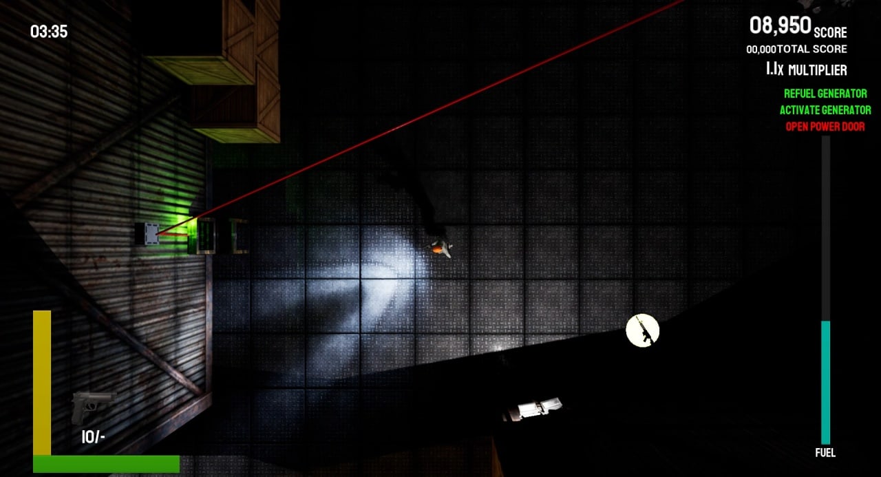 На всех территориях разбросано оружие, его нужно поднимать и пополнять свой арсенал. Герой может нести на себе до 5 видов огнестрела: пушка, ружье, револьвер, винтовка и дробовик. Запас патронов не бесконечный, они находятся в ящиках, которые спрятаны в углах карты, их здесь несколько: осколочные, боевые, револьверные и шпилечные. В игре присутствует 10 уровней, разделенным на 3 этапа сложности: простой, средний и трудны. Последний отличается волновой атакой. Зомби нападают циклически и сметают всё на своём пути. Чтобы успешно дойти до двери, которая открывает выход на свободу, необходимо зачистить всю область. До этого момента геймер подвергается постоянной опасности.