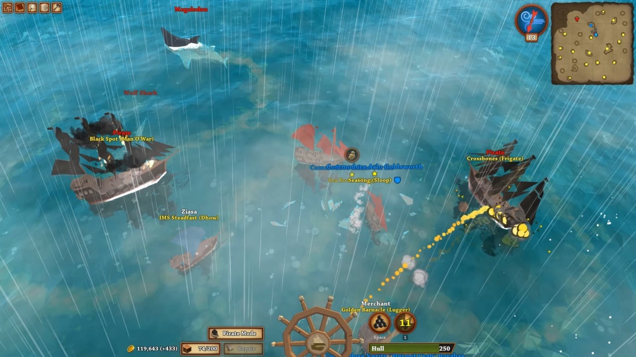 В игре присутствует генерация случайных событий. Во время битвы, может топить судна огромный осьминог, начнётся шторм, нападут акулы или всех затянет водоворот. Чтобы обойти все препятствия необходимо прокачать своё судно. За уничтожение кораблей и победу в матче, вы получите средства на которые можно купить более сильную команду, улучшить палубу, маневренность и добавить пушек. В свободное от сражений время, геймер может заняться торговлей награбленных товаров или уничтожить правительственные судна. Займитесь изучением новых локаций, будьте готовы к следующей атаке.