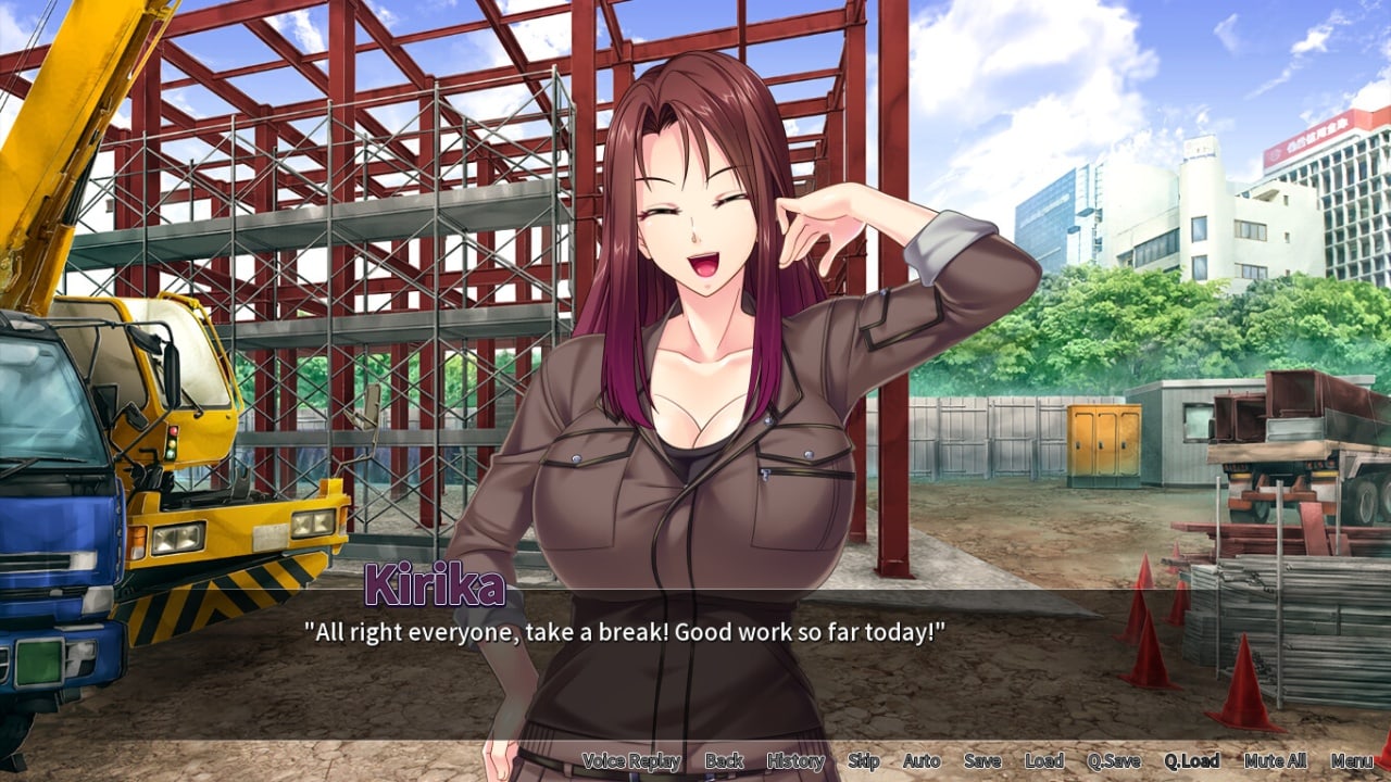 Muscle MILF – это визуальная новелла, рассчитанная на аудиторию постарше. Сюжет в ней частично нелинейный. Один раз за прохождение игроку предлагают сделать выбор. Его решение открывает доступ к паре особых хентайных сценок. Всего здесь 11 эпизодов с хентаем. История рассказывает о сексуальных похождениях парня-неудачника. Герой устраивается работать на стройку. Ему приходится тяжело трудиться с 9 утра до 5 вечера под руководством суровой, но соблазнительной женщины средних лет. Он жаждет переспать с начальницей, и вскоре его мечта воплощается. Однажды Кирика заставляет протагониста задержаться допоздна и помочь ей с ящиками. После череды случайных и неловких событий молодой рабочий видит пышногрудую барышню в нижнем белье и пробует её соблазнить. Так начинается завязка их романтических отношений.