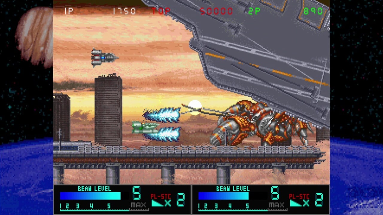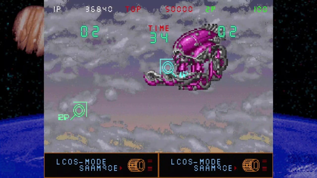 Когда ваша шкала луча заполнена, вы можете выпустить энергетические атаки. Вам доступны два типа атак: концентрированная Focused Beam, которую вы можете использовать, удерживая кнопку энергетического выстрела, и Release Beam, которая поражает всех врагов на экране. Но будьте осторожны - боссы также владеют энергетическими лучевыми атаками. В случае столкновения с лучем босса, вы создадите шар энергии, который направится в сторону менее заполненной шкалы. Приготовьтесь к захватывающим битвам и крутым возможностям игры. И помните, что здесь есть режим для двух игроков - пригласите друга и вместе сражайтесь за победу!
