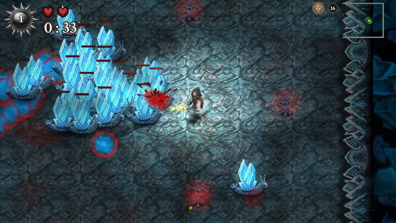 Выберите одного из восьми уникальных персонажей, разблокируйте более 30 видов оружия, встречайте более 20 уникальных врагов и боссов, а также 10 финальных боссов. Используйте умелые уклонения, чтобы избежать и уйти от атак противника. Все элементы игры нарисованы вручную, с саундтреком, продолжительностью примерно в 1 час. Соревнуйтесь на множестве онлайн-таблиц лидеров с сезонными и личными лигами.
