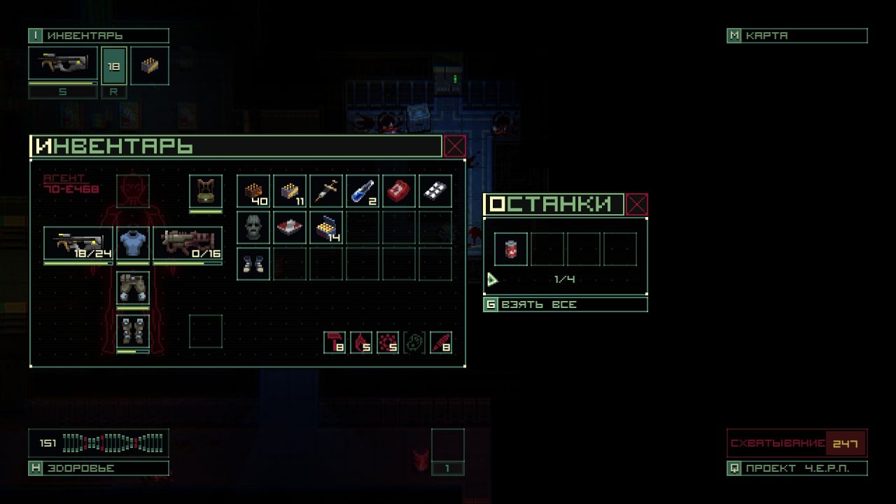 Quasimorphosis: Exordium RUS v 0.1.6 Новая версия Полная версия Последняя Дата выхода 2 мар. 2022 Разработчик MgnmScrptmDvs Жанр Приключения, RPG, Инди Обновлено 26 января 2025, 17:24 Список изменений Quasimorphosis: Exordium – смесь хоррор-выживалки и рогалика в одном флаконе. Основные события развиваются в глубинах космоса на орбитальной станции Фарцева-7 вблизи Сатурна. Героем выступает опытный наемник, которого решают отправить туда, чтобы узнать, почему персонал уже долгое время не выходит на связь. На месте оказывает, что большинство людей были убиты, а станция оказалась в зоне действия квазиморфного поля. Возможно именно это стало причиной появления на борту ужасных существ, которые напоминают не пришельцев, а скорее демонических созданий из иных миров. Именно демоны и станут главными противниками на протяжении игры. Каждый забег будет состоять из ряда миссий, где необходимо выполнить определенную задачу. Мешать этому будут монстры и темные сущности, которые обладают мощной атакой и численным превосходством. Благодаря тому, что все схватки происходят в пошаговом режиме, то можно не спешить, а спокойно обдумать свой следующий шаг. Важно продумывать свою стратегию наперед, чтобы не оказаться в окружении, а также максимально эффективно использовать местность. Для уничтожения врагов будет целый арсенал оружия, который позволит отправлять супостатов обратно в иное измерение. При гибели прохождения нужно начинать сначала, но у протагониста будет уже опыт и подготовка, поэтому следующий забег уже будет чуточку легче. Кроме того, можно улучшать скиллы подопечного, чтобы он лучше юзал аптечки и электронные примочки, которые значительно облегчат игровой процесс. Скачать торрент Скриншоты Показать больше Видео из игры Скачать Quasimorphosis: Exordium Тип релиза Пиратка (Таблетка: Не требуется) Версия v 0.1.6 (Полная) Последняя Размер 56.7 МБ Интерфейс Русский Озвучка Отсутствует Скачать .torrent торрент файл Скачать БЕЗ торрента прямая ссылка через uTorria Системные требования ОС: Windows 7, 8, 10 (64-bit) Процессор: Intel Core 2 Duo E6320 Оперативная память: 2 ГБ Видеокарта: GeForce 7600 512 Mb Место на диске: 100 МБ Рогалик, Пошаговая тактика, Процедурная генерация, Пиксельная графика, Научная фантастика, Хорроры, Пошаговые сражения, Игры в 2D, Пошаговые стратегии, Тактическая RPG, Упрощённый рогалик, Будущее, Мрачная, Олдскул, Ретро, Тактика, Хоррор на выживание