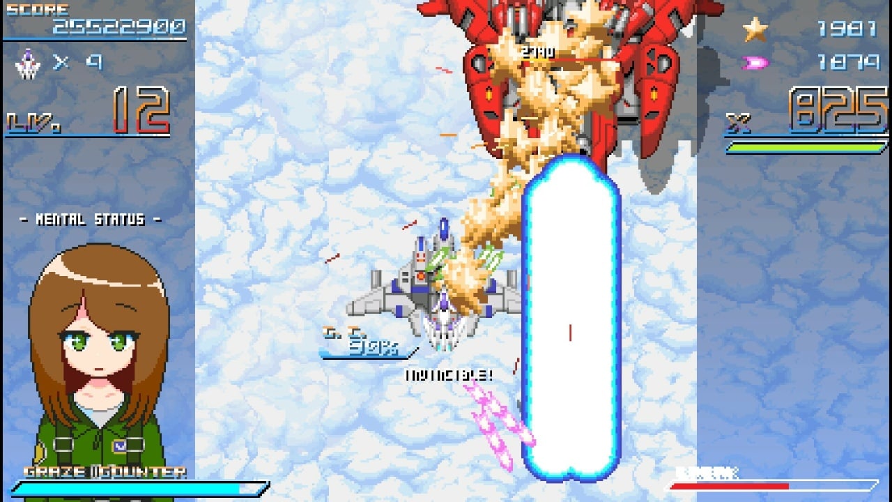 По мере прохождения семи уровней игры, состоящих из пяти этапов и двух альтернативных путей, вы будете заряжать свой индикатор, находясь в опасной близости от вражеского огня. Как только ваш калибр заполнится, вы сможете применить мощную атаку Graze Counter, которая уничтожит врагов. Уничтожая врагов с помощью этих специальных атак, вы зарабатываете звезды, которые можно использовать для пополнения калибра Break Gauge. Как только он достигнет MAX, вы сможете активировать режим Break Mode для временного, но интенсивного усиления огневой мощи! Но берегитесь, эта игра не для слабонервных! В игре четыре уровня сложности на выбор и множество сложных противников, которых нужно победить, поэтому для успеха вам понадобится быстрота реакции и молниеносные рефлексы.