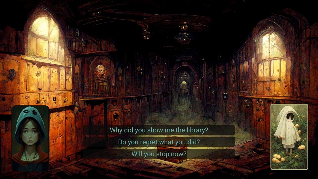 Полностью реализованные персонажи и окружающая среда оживают благодаря тексту, создаваемому искусственным интеллектом, что обеспечивает невероятное погружение в игру. Независимо от того, хотите ли вы взаимодействовать с неигровыми персонажами или просто любоваться окружающими вас достопримечательностями и звуками, вы будете постоянно удивляться креативности ИИ и его вниманию к деталям. Это визуальный роман, состоящий из 10 глав интерактивного повествования. В каждой главе вы будете исследовать новое место, встречать увлекательных персонажей и делать выбор, который определит направление развития сюжета. Ветвящееся повествование гарантирует, что вы сможете вернуться к каждому этапу и открыть для себя все возможные пути развития сюжета. Углубляясь в "книгу историй", вы сможете испытать все возможные варианты развития событий и не пропустить ни одного из невероятных моментов игры.