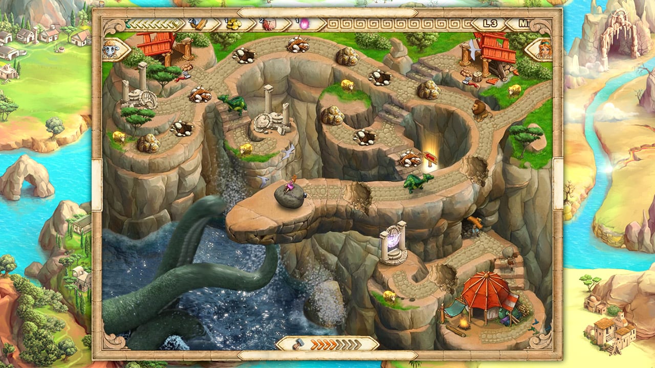 Геймплей выполнен в стиле "time-management" стратегии. Нужно собирать ресурсы, представленные на каждой карте, среди которых: древесина, золотые монеты, пропитание, камень и мощь богов. Благодаря последнему, герои пополняют свои сверхсилы и максимально заряжаются на подвиги, например, на убийство гидры или льва. Добывается мощь богов с помощью алтарей для поклонения божествам. Древесину пополнит лесопилка, а остальные ресурсы разложены на уровне.