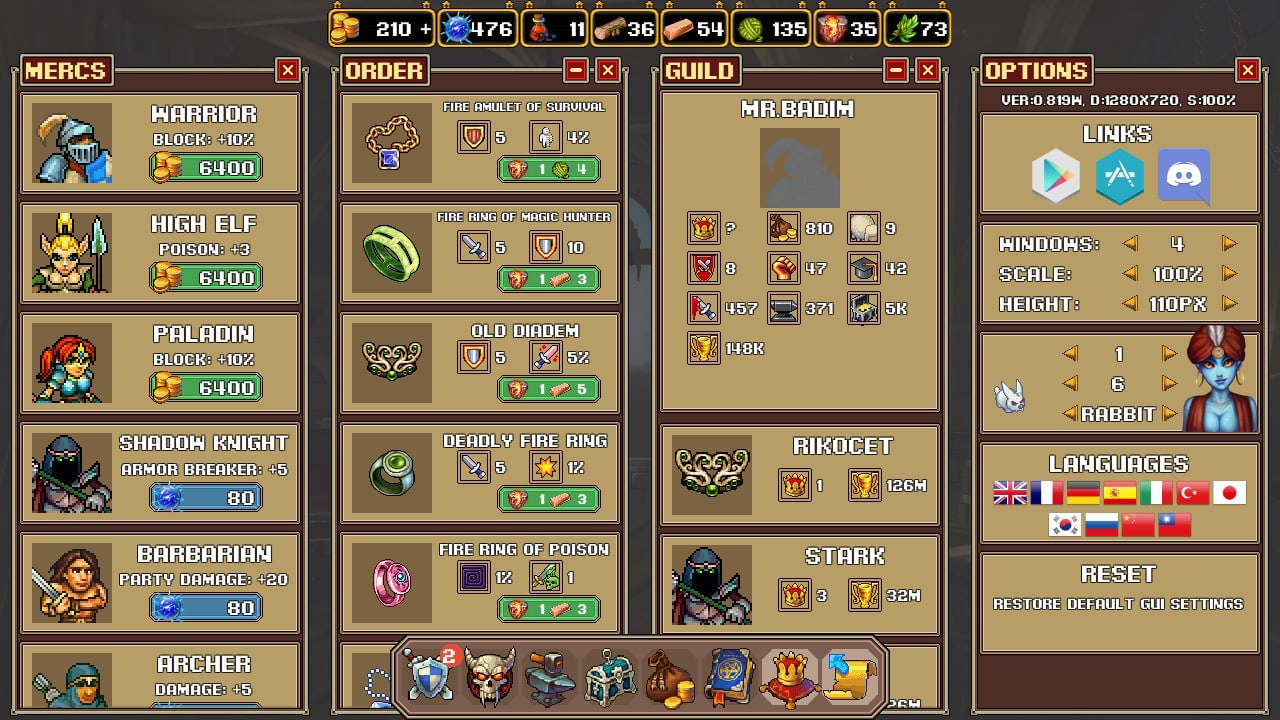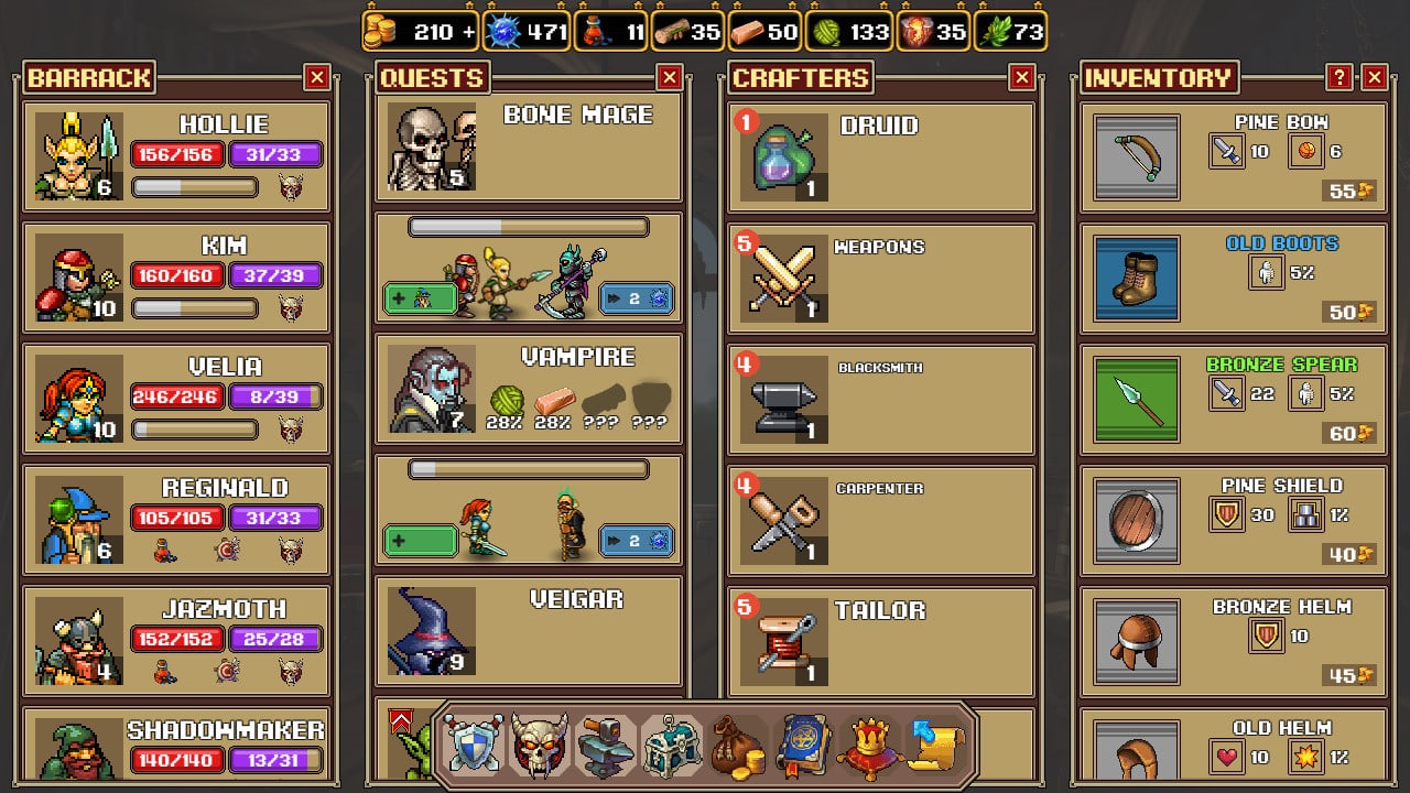В игре тебя ждут более 100 пиксельарт героев, врагов и боссов, более 20 классов героев, несколько актов со своими боссами и лутом, а также возможность персонализировать своих героев с помощью классовых перков и предметов. Ты сможешь формировать отряды для эпичных боссов и сложных врагов, прокачивать ремесленников, чтобы создавать более мощные вещи, и продавать предметы лучше и дороже. Чем сильнее твои герои, тем плотнее твои ряды. Ты сможешь строить новые комнаты для тренировок, улучшать библиотеку для своих магов и заклинаний, а также добывать и прокачивать своих гномов в новой шахте. И не забывай про дополнительный слот в таверне, только для гномов!