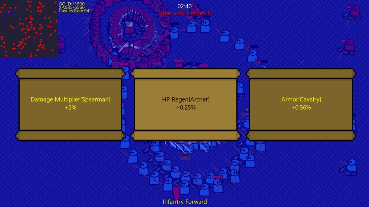 Crusader's March предлагает почувствовать себя настоящим полководцем, ведущим свою армию к победе в эпических сражениях. Вам предстоит сражаться с ордами врагов, которые будут неуклонно нарастать, и ваша задача - остановить их. Чтобы это сделать, вы должны постоянно улучшать свою армию и повышать ее численность. В игре доступна камень-ножницы боевая система, в которой каждый юнит имеет свои преимущества и недостатки. На вас лежит ответственность выбирать правильные комбинации воинов и расставлять их так, чтобы получить максимальную пользу в битве.