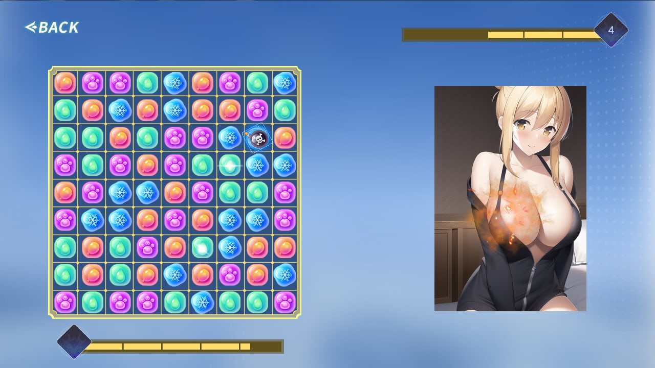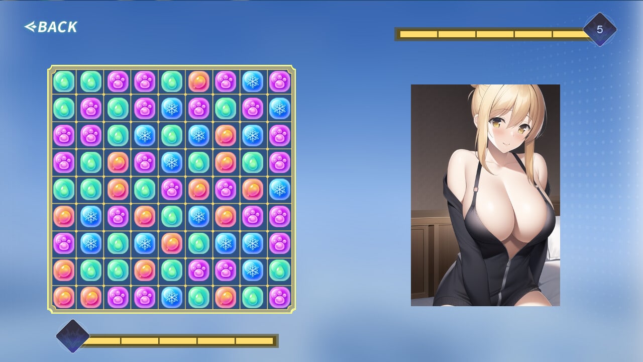 Fingers' Dating - это казуальная стратегия в жанре "три в ряд", которая сочетает в себе классический геймплей ликвидации с красивой CG-графикой. Главная цель - разрушить как можно больше одинаковых и непрерывных блоков, перемещая их с помощью мыши. Когда 5 одинаковых и непрерывных квадратов уничтожены, они создают мину, которая может быть использована для обмена позициями с любым квадратом вокруг него, что позволяет уничтожить все квадраты с одинаковым рисунком.