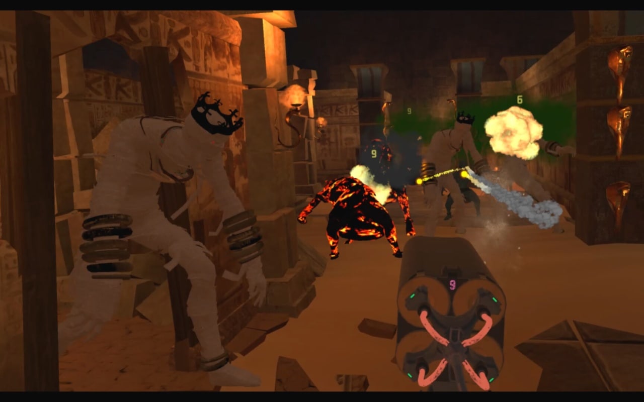 The secret pyramid VR - это увлекательное путешествие оформленное в виде FPS. Игрок станет настоящим искателем приключений, который исследует древнеегипетские гробницы в параллельном мире, и спускается в огромное и мрачное подземелье, чтобы найти легендарное сокровище. Каждый уровень генерируется случайным образом, и каждое новое начало после поражения - это совершенно новый опыт. Игроки могут найти различные виды оружия и артефакты со специальными возможностями. Комбинация разного оружия и способностей открывает новые стратегии и уникальный опыт прохождения. В арсенале доступны классические пистолеты, пистолет-пулеметы "Scorpion", дробовики "SawnOff" и другие виды оружия, а также безумный огнемет и взрывные арбалеты.
