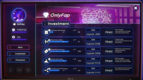 OnlyFap Simulator 3 RUS v 1-2-3 Final Новая версия Полная версия Последняя Дата выхода 29 окт. 2022 Разработчик BanzaiProject Жанр Симуляторы, Приключения Смешанные на основе 217 обзоров в Steam 60% Обновлено 20 февраля 2025, 03:05 Список изменений OnlyFap Simulator 3 –эротический симулятор веб-кам модели. Не стоит надеяться на внятный сюжет, ведь тут его по сути нет. Главной героиней выступает красотка, которая решает податься в бизнес для взрослых и зарабатывать на своем теле. Для этого она прикупила карьеру и начинает ласкать себя, чтобы заставит раскошелиться извращуг в сети. Чтобы удовлетворить запросы аудитории продеться придумывать интересные развлечения, одевать костюмчики и покупать нетривиальные секс-игрушки. Также не стоит забывать общаться со своей аудиторией и приглашать других девушек для совместных сцен, тогда получится заработать прибыль и выбиться в лидеры этой сферы индустрии. В этом и будет основная цель игры – заработать как можно больше налички. Чем предстоит заниматься в OnlyFap Simulator 3: Модели окружения, а также женского тела сделаны на высочайшем уровне. Также порадует качество анимаций, где все можно рассмотреть в мельчайших деталях. Полученные деньги можно тратить на улучшение своего рабочего места. Разрешает приобрести телевизор, мягкий матрас и другие приспособления для комфорта протагонистки. Не обойдется и без извращений. Только геймеру решать, что готова сделать с собой красотка ради увеличения прибыли. Не стоит забывать общаться с фанами, чтобы узнать их пожелания для увеличения популярности. Доступны также сцены группового секса с другими девицами, что выгляди очень горячо. Красоток тут несколько на выбор игрока. Скачать торрент Скриншоты Показать больше Видео из игры Скачать OnlyFap Simulator 3 Тип релиза Пиратка (Таблетка: Не требуется) Версия v 1-2-3 Final (Полная) Последняя Размер 673.42 МБ Интерфейс Русский Озвучка Отсутствует Установка и запуск: Скачать .torrent торрент файл Скачать БЕЗ торрента прямая ссылка через uTorria Системные требования ОС: Windows 7, 8, 10 (64 бита) Процессор: 1.2 GHz Оперативная память: 4 ГБ Видеокарта: DirectX 9 Место на диске: 1 ГБ Нагота, Кликер, Менеджмент, Симулятор жизни, Кастомизация персонажа, Мемы, Расслабляющая, Протагонистка, Казуальная, Иммерсивный симулятор