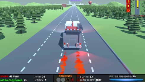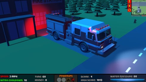 Ты будешь управлять пожарной машиной с установленным оксидом азота, который можно активировать каждые 10 секунд. Однако, этот буст можно улучшить, заработав деньги за успешное выполнение вызовов, чтобы он длился дольше. На средней части авто установлен водяной кран, который можно управлять, остановив машину и нажав "V", а затем используя клавиши со стрелками, чтобы направить струю и потушить пожары. Давление воды может быть увеличено, что приведет к большему количеству выстрелов водой на большее расстояние, или уменьшено, что приведет к меньшему количеству выстрелов на меньшее расстояние. Пожарная машина содержит резервуар на 1000 галлонов воды (который на самом деле содержит большие водяные пули). Резервуар может быть улучшен, чтобы содержать 500 дополнительных галлонов воды, и он может быть мгновенно заполнен, проезжая мимо пожарного гидранта.