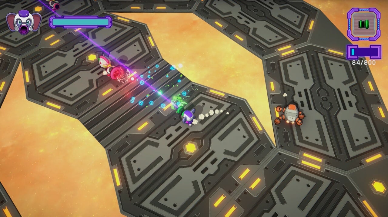 Super Trunko Go - захватывающий шутер с видом сверху, который перенесет геймеров в увлекательный космический мир. Помоги главному герою, космослону Супер Транко, вернуть мир и порядок на планете! Зловещий Лорд Таск снова наводит свои козни и угрожает доминировать над планетой! Лорд Таск и его темная магия контролируют жителей и сеют хаос в каждом уголке! Профессор Элли, ключевой планетарный советник, признает эту угрозу и обращается за помощью к протагонисту.