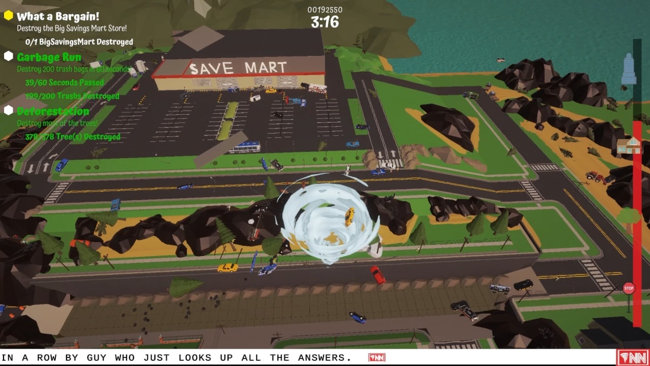 Trouble in Tornado Town - это основанная на физике аркада про разрушения, которая предлагает забавный и мультяшный взгляд на стихийные бедствия. Вы возьмете на себя роль мощного торнадо, сеющего хаос в Торнадо-Таун и за его пределами. Реализован ряд физических механик, которые позволяют производить разрушения творческими и интересными способами, используя стихию для захвата объектов и подбрасывания их, как игрушек.