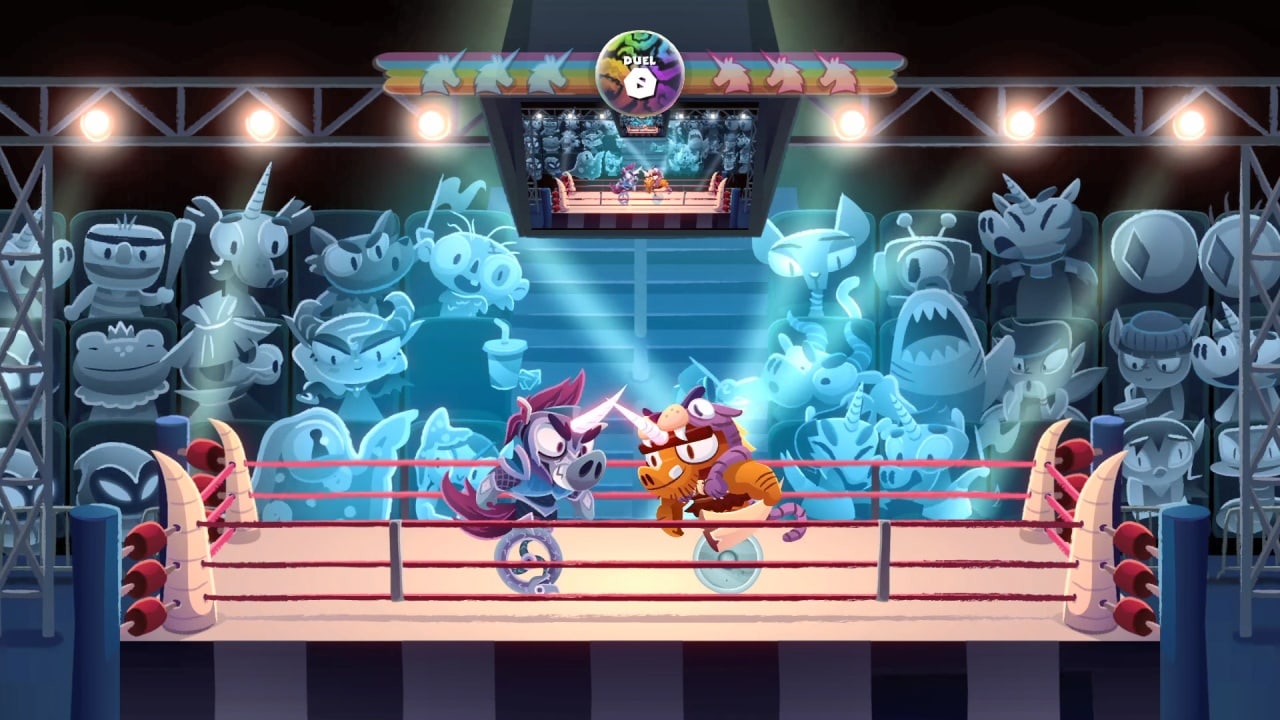 Unicorns on Unicycles - это забавный мультяшный многопользовательский файтинг, в котором вы сможете стать настоящим воином-единорогом и сразиться на своем одноколесном велосипеде со своими соперниками. Вас ждет более 30 уникальных уровней, каждый из которых имеет свою уникальную атмосферу, музыку и дизайн, созданный с огромным вниманием к деталям. Выберите своего персонажа из разноцветных единорогов, каждый из которых имеет свои уникальные навыки и способности. В бою используйте свой рог в качестве меча и свой одноколесный велосипед в качестве щита, чтобы победить своих соперников. Благодаря физическим особенностям каждого уровня, вам придется изменять свою тактику боя и адаптироваться к новым условиям, чтобы одержать победу. В процессе игры вы сможете улучшать свои навыки, повышать уровень своего персонажа и открывать новые возможности.