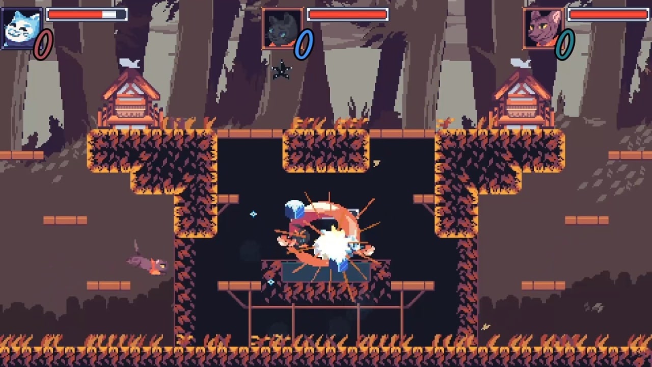 Приготовьтесь сразиться с друзьями в захватывающих матчах 1v1 и 2v2 или в хаотичной свободной борьбе. Три разных способа победить: взорвать святилище противника мощной бомбой, набрать очки, забрасывая, подстреливая и забрасывая рыбу в корзину, или сразить противника в жестокой схватке лоб в лоб - каждый матч это новая возможность для победы. А если вы хотите отточить свои навыки, одиночные испытания на время позволят испытать ваши способности на прочность, ведь вы будете соревноваться со временем, чтобы заработать желанного золотого кои. Так чего же вы ждете? Возьмите свой контроллер и приготовьтесь открыть силу мурлыки!