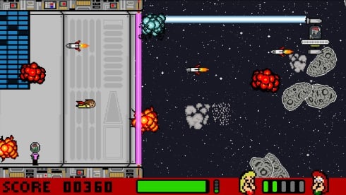 Но не отчаивайтесь, вас ждут бонусы! Найдите щит, и вы активируете режим усиления, где ваш счет и комбо-счетчик увеличиваются, вы становитесь быстрее и становитесь неуязвимыми! Но будьте осторожны - режим длится только одно столкновение. А еще, найдите атом и получите возможность стрелять огненными шарами! Соберите до 4-х атомов, чтобы получить супер-удар, который способен разрушить все на своем пути и нанести урон боссам! Ну что, готовы спасти Пиксвилль и стать королем аркады? Тогда начинайте игру!