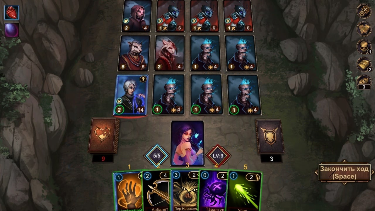 Blood Card 2: Dark Mist - это уникальное сочетание колодостроения и рогалика. Здесь Вам предстоит сражаться с волнами жутких монстров и повышать свой уровень прямо во время боя. Осторожно, враги нападают тремя рядами, так что тщательно планируйте свои атаки, чтобы не быть ошеломленным. Но помните, что Ваша жизнь зависит от количества карт в Вашей колоде, поэтому каждый раз, когда получаете урон, враг берет карту. Если колода истощена, игра заканчивается.