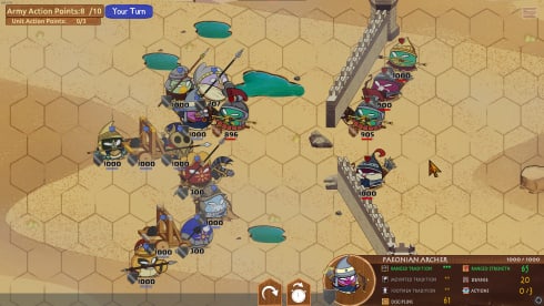 AlexanderBall: A Countryball Tale - это глобальная стратегия, которая предлагает геймерам стать на место Александра Македонского! Начните завоевательные походы, чтобы объединить мир под своей властью, с помощью разнообразного состава причудливых полководцев и армии мячей с уникальными боевыми традициями. Замысловатая тактика - ключ к успеху на поле боя. Обходите противников с флангов, чтобы получить бонусный урон, укрепляйте пехоту против атак, вводите в бой кавалерию и осыпайте врагов стрелами с помощью стрелковых подразделений. С ограниченным количеством очков действия в каждый ход вам придется принимать стратегические решения, чтобы добиться победы.