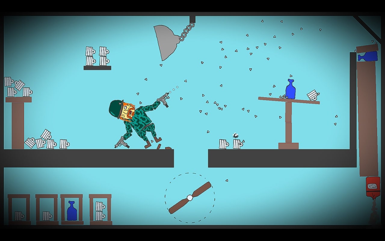 Приготовьтесь к захватывающему и уморительному игровому процессу, когда вы будете пытаться пройти каждый уровень, преодолевая все более сложные испытания и выполняя несколько впечатляющих трюков. Но будьте внимательны - каждый промах приводит к хаосу и разрушениям, поскольку пули летят рикошетом и не попадают в цель. Вы даже можете случайно выстрелить себе в ногу (в буквальном смысле)! Пусть вас не отпугивает сверхвысокий уровень сложности - благодаря быстрым перезагрузкам и веселому чувству юмора даже самые крупные неудачи заставят вас смеяться вслух. Так что берите оружие и приготовьтесь доказать свое мастерство в этой возмутительной пьяной стрелялке с элементами головоломки. Пришло время показать этим синим бутылкам, кто в доме хозяин!
