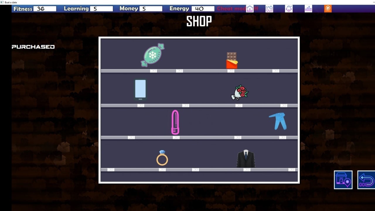 Bust a date v 1.0 Новая версия Полная версия Последняя Дата выхода 28 мая. 2020 Разработчик DevaGames Жанр Приключения, Инди, Визуальная новелла В основном отрицательные на основе 26 обзоров в Steam 27% Обновлено 26 февраля 2025, 17:54 Список изменений Главным героем романа Bust a date выступает перспективный молодой парень, зарабатывающий себе на жизнь созданием компьютерных программ. Профессия приносит ему достаточные финансы для разгульной и безбедной жизни. Но, к сожалению, второй половинки он не имеет. Виной всему природная застенчивость и банальная нехватка свободного времени. Внезапно перед протагонистом появляется мифическое создание, обладающее волшебными способностями. Оно толкает его на авантюру, чтобы наконец-то покончить с одиночеством и подцепить сногсшибательную девушку для приятного времяпровождения. Постепенно роль духа становится определяющей для его судьбы, поскольку сложные решения не принимаются без ее совета. В Bust a date пользователь не только управляет действиями центрального персонажа, но и следить за его состоянием здоровья, желанием кушать и пить. Также регулярно пополняется жизненная энергия, чтобы не опозориться в компании потенциальной партнерши. Авантюрист запросто заводит с избранницей разговор в удобном месте. Судьбоносные встречи случаются возле кассы в супермаркете, на работе или на улице. Про работоспособность и выполнение служебных обязанностей тоже нельзя забывать, ведь теперь полученные средства улетают и на личные расходы, и на окучивание дамочек молниеносно. При общении с женщиной подбирается особая тактика и манера разговора, чтобы не спугнуть самочку и учитывать ее характер. Скачать торрент Скриншоты Показать больше Видео из игры Скачать Bust a date Тип релиза Пиратка (Таблетка: Не требуется) Версия v 1.0 (Полная) Последняя Размер 1.58 ГБ Интерфейс Английский Озвучка Английская Установка и запуск: Скачать .torrent торрент файл Скачать БЕЗ торрента прямая ссылка через uTorria Системные требования ОС: Windows 10 (64-bit) Процессор: Dual Core 2.0 GHz Оперативная память: 4 МБ Видеокарта: 1 ГБ Место на диске: 2 ГБ Нагота, Песочница, Фэнтези, Смешная