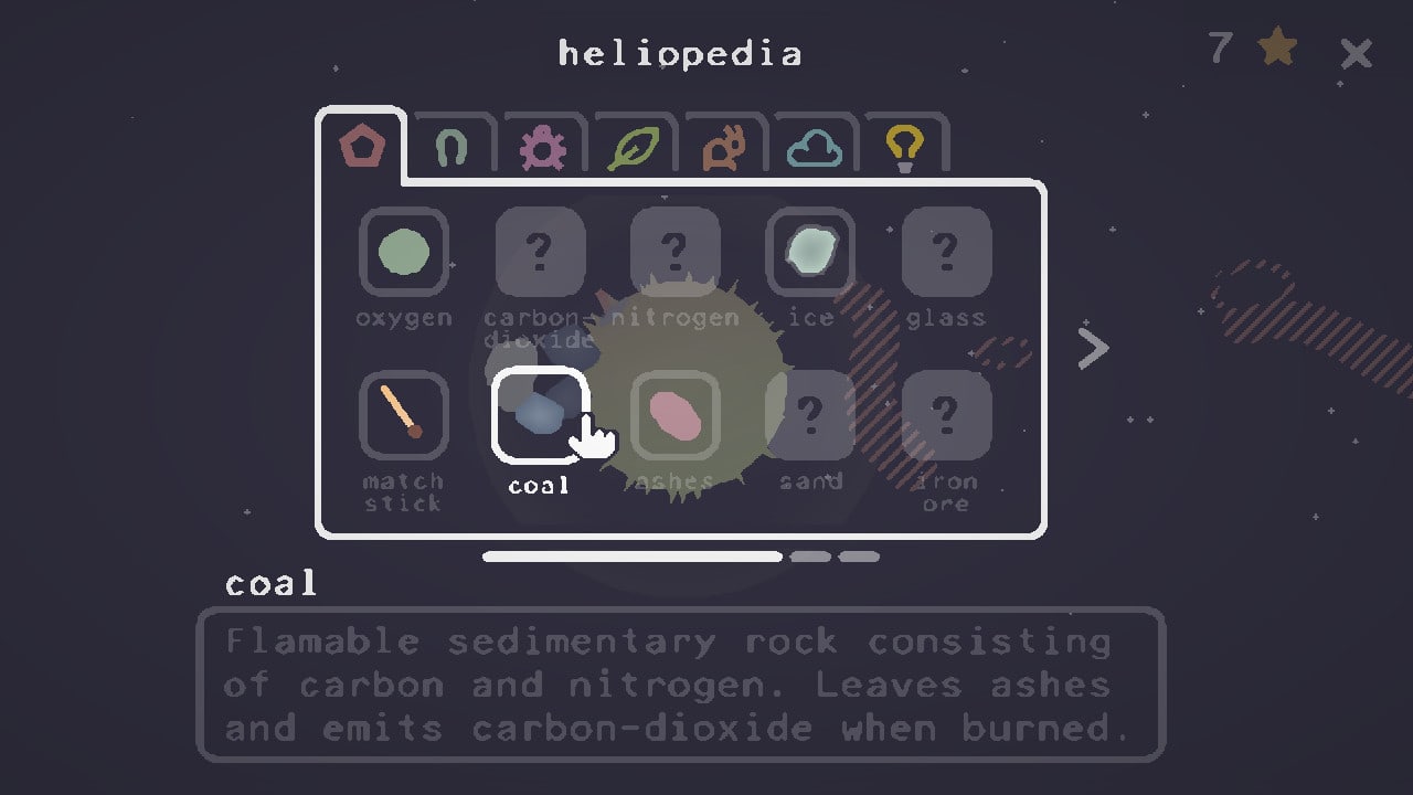 По мере прохождения вы будете следить за историей дружелюбного солнца в центре вашей вселенной. Накормив его любимой едой, например, углем или пеплом, вы получите в награду новую планету для терраформирования! Но имейте в виду - с большой властью приходит большая ответственность. Вы можете создать прекрасные планеты-океаны, пышные травяные равнины и яркие тропические леса. Или, если вы чувствуете себя немного озорником, вы можете породить разрушения с помощью лесных пожаров, вулканов и гроз. В Heliopedia представлены 11 различных основных типов биомов, природные катастрофы, такие как пожары, молнии и вулканы, а также множество разнообразных видов насекомых, растений, животных и деревьев. В энциклопедии более 100 статей, и вы никогда не исчерпаете возможности открыть для себя что-то новое.