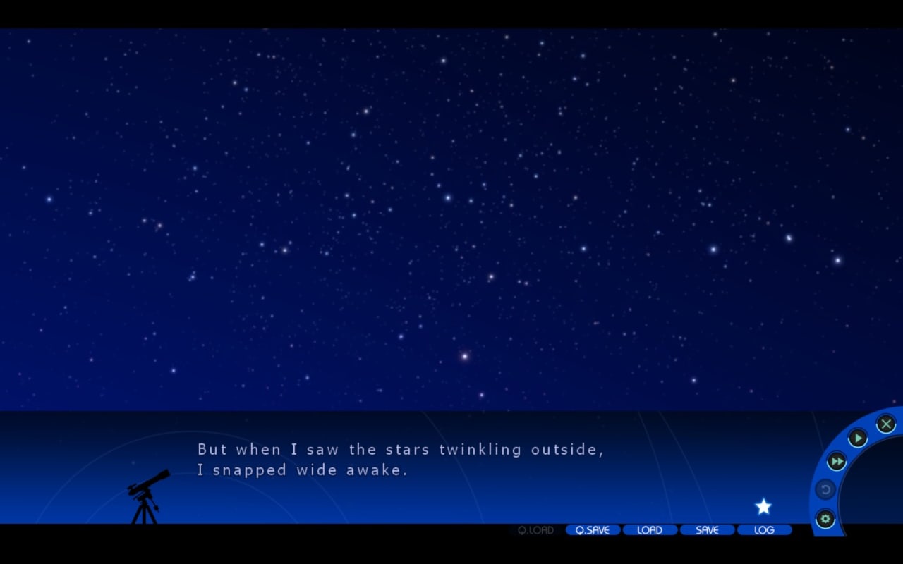 Присоединяйтесь к молодым людям из астрономических клубов разных школ, когда они собираются вместе, чтобы посмотреть на звезды, и познать чудо Вселенной в потрясающих деталях. Наша команда приложила максимум усилий, чтобы как можно точнее воспроизвести ночное небо, используя данные из каталога Hipparcos и программное обеспечение планетария "Starry Winds MMD". Но не только визуальные эффекты приведут вас в трепет. Мы использовали технику бинауральной записи, чтобы создать захватывающий звуковой опыт, который заставит вас почувствовать, что вы находитесь рядом с героями, глядя на звезды. Итак, где бы вы ни находились, присоединяйтесь к нам, чтобы посмотреть на то же небо, и отправляйтесь в путешествие, которое останется с вами надолго после того, как звезды скроются из виду.