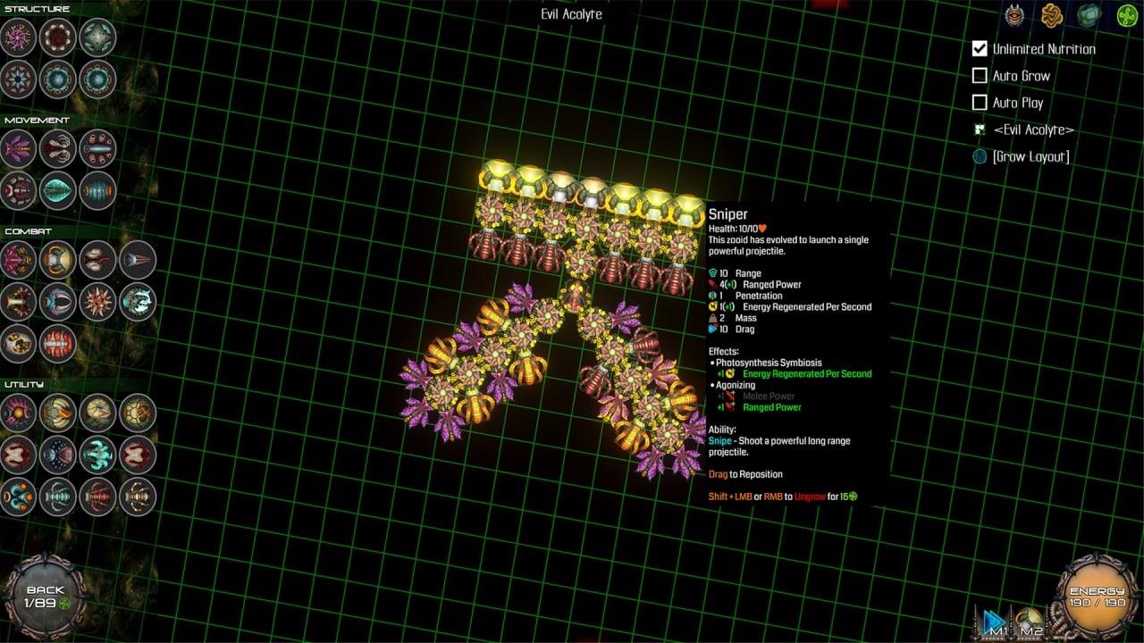 Остерегайтесь могущественных противников, которые могут помешать вашим планам. Собирайте питательные вещества, развивайте свое создание и станьте лучшим из лучших. Создайте своего собственного монстра, сочетая различные части тела, каждая из которых имеет свою уникальную функцию. Чем дальше вы продвигаетесь, тем больше опций открывается, и тем мощнее вы становитесь. Выберите свой собственный стиль игры. Разблокируйте 5 разных видов существ в игре и откройте для себя тот, который подходит вашему стилю игры. Смешивайте части тела разных видов, чтобы создать ультимативного супермонстра. В режиме "Аквариум" вы сможете проявить свое творчество, используя неограниченные инструменты для создания существ своей мечты или кошмара. Создавайте красивые арены или запутанные лабиринты - все будет сохранено.
