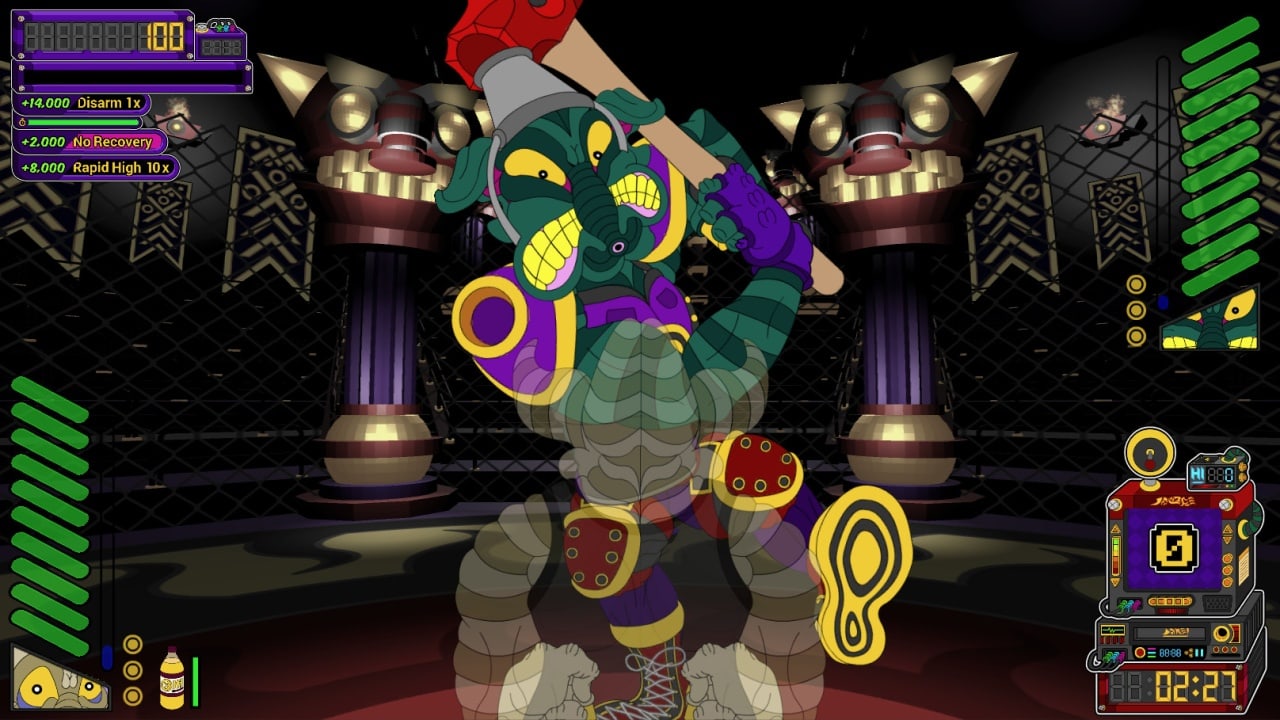 Billion Beat предлагает обширный набор приемов, который позволит вам проложить себе путь к вершине, используя идеальное время и мощные атаки. Накапливайте и расходуйте энергию, чтобы наносить сильные удары и стремительные шквалы, и стратегически выполняйте приемы, чтобы уничтожить своих противников. Благодаря полному моделированию повреждений вы можете выбить зубы, разбить стекла и поставить синяк под глазом, оставив зрителей в восторге от вашего мастерства. Но на этом веселье не заканчивается. Разжигайте толпу, нанося хитрые удары и осваивая гипер-версию каждой атаки, которая является более полезной, но менее эффективной. Пройдите миссии Hyper и сделайте ставку перед каждым матчем, чтобы поставить на свое мастерство и получить вознаграждение или потерпеть поражение. Набирайтесь опыта, повышайте уровень каждого кулака в отдельности и настраивайте свой боевой стиль, заполняя разветвленное дерево технологий. А если вы в затруднительном положении, купите, экипируйте и выпейте Дранкс, чтобы восстановить здоровье в середине матча.